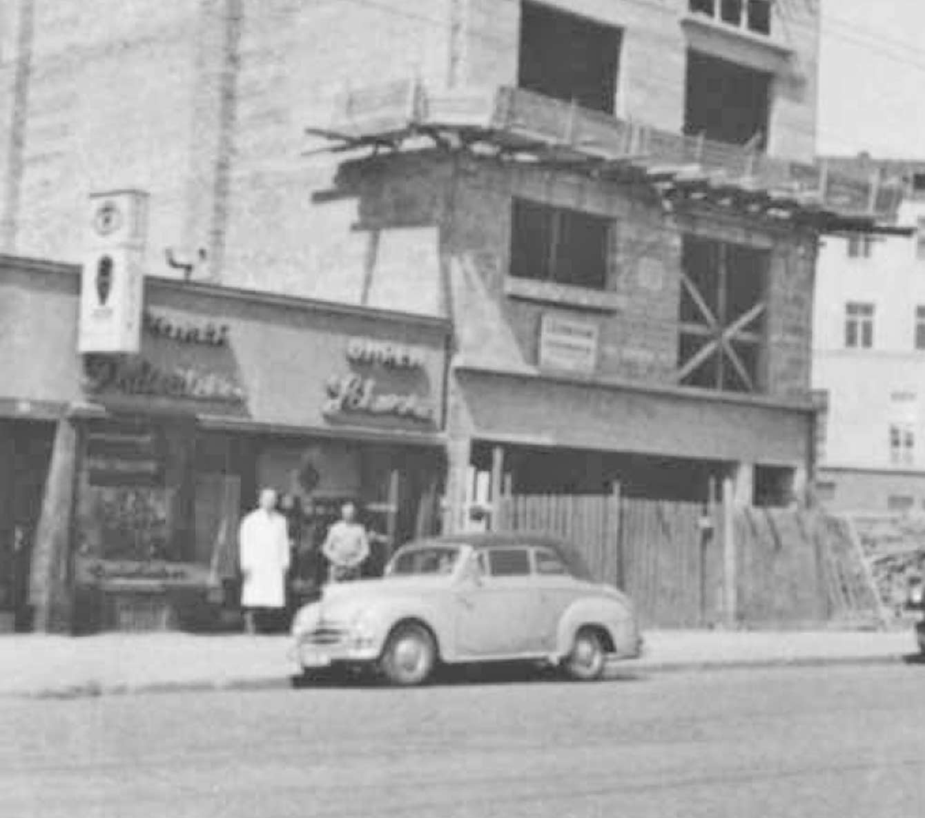 1942 wurde in der Luxemburgerstraße 28 ein provisorisches Ersatzgeschäft in einem Holzhaus eröffnet.