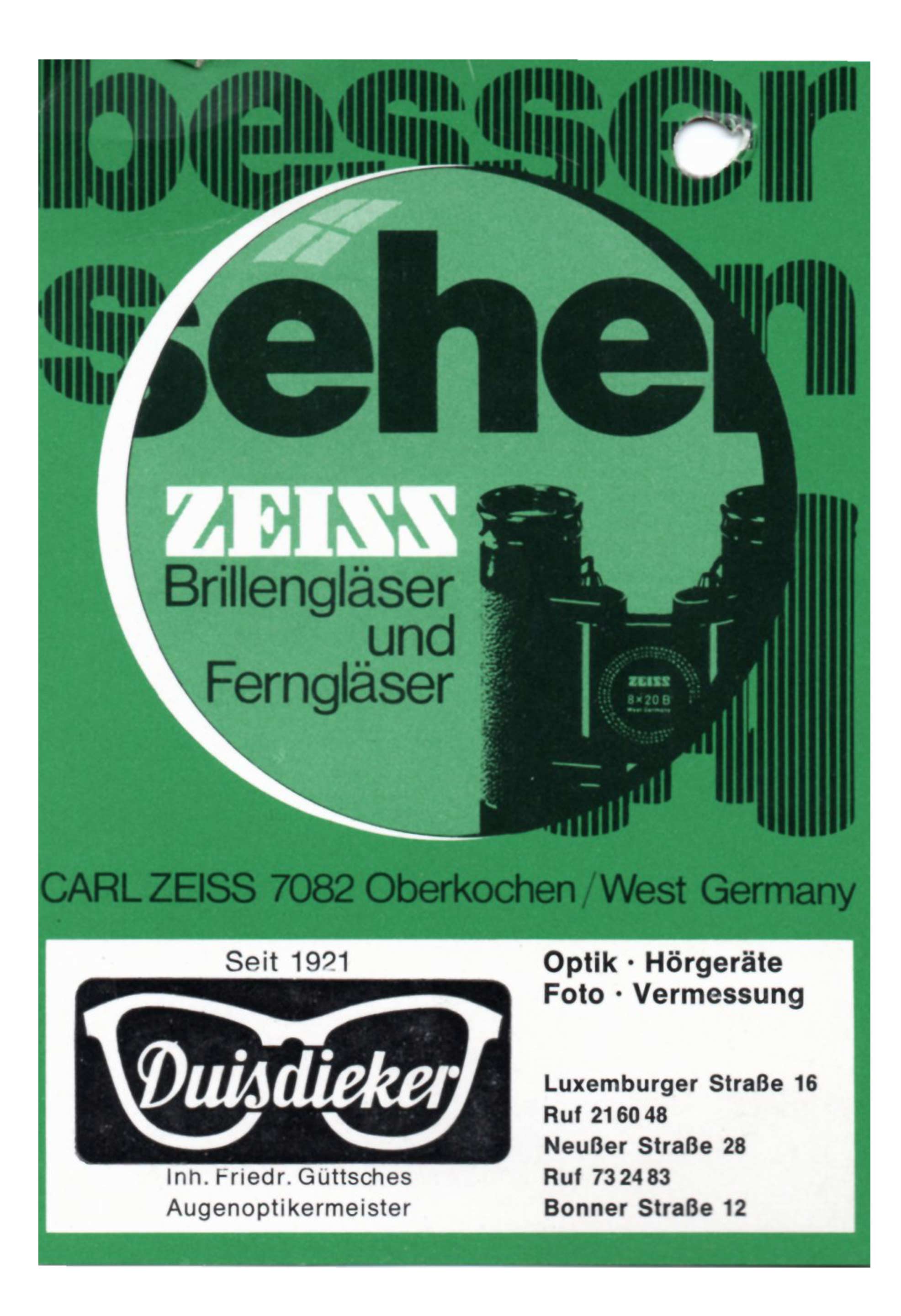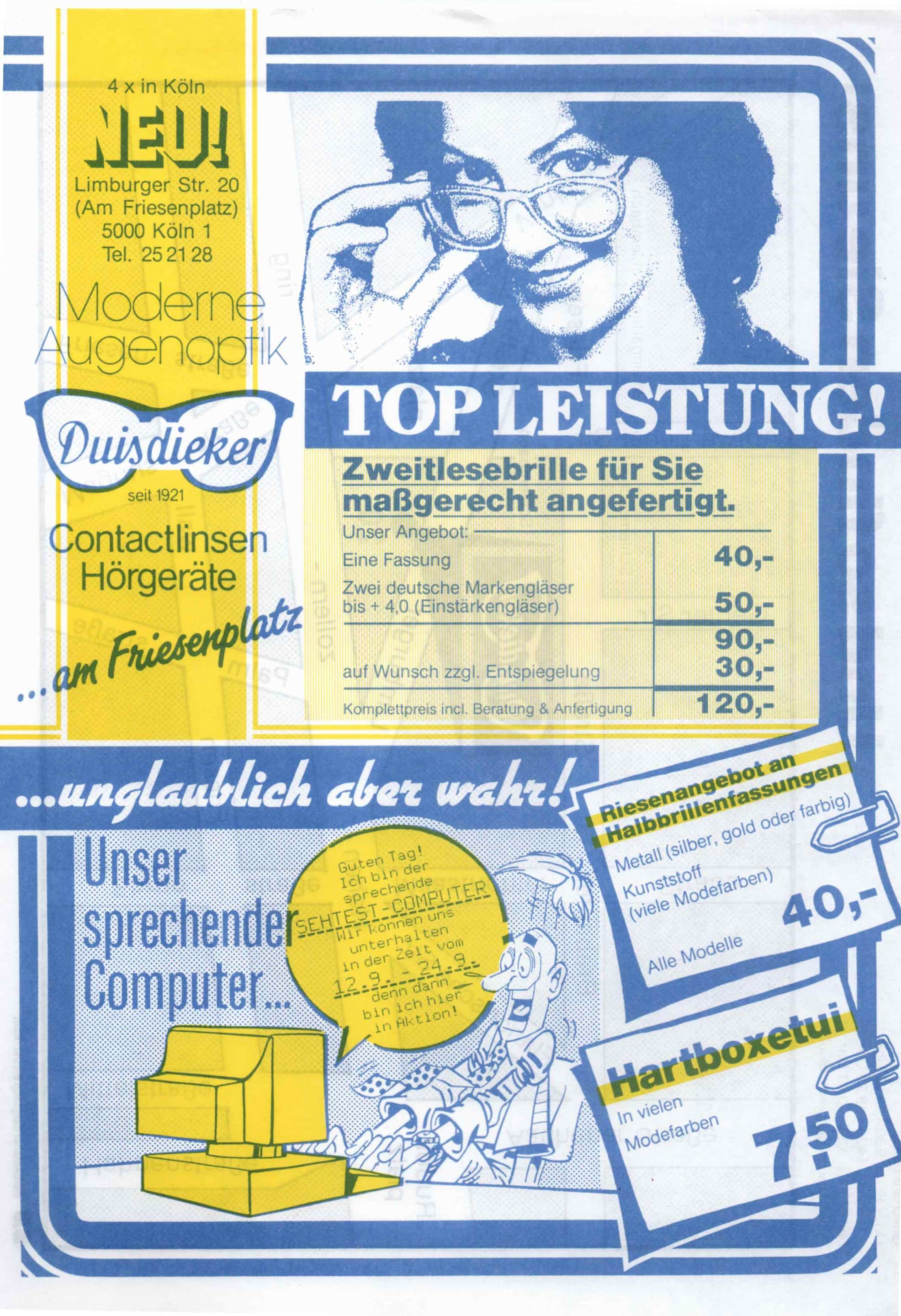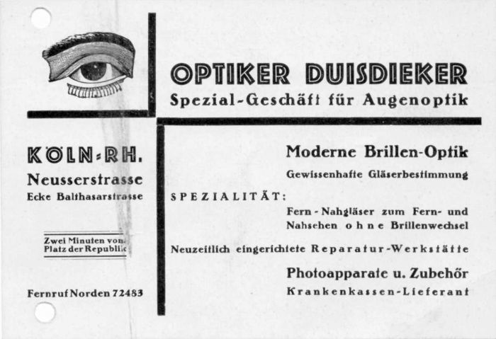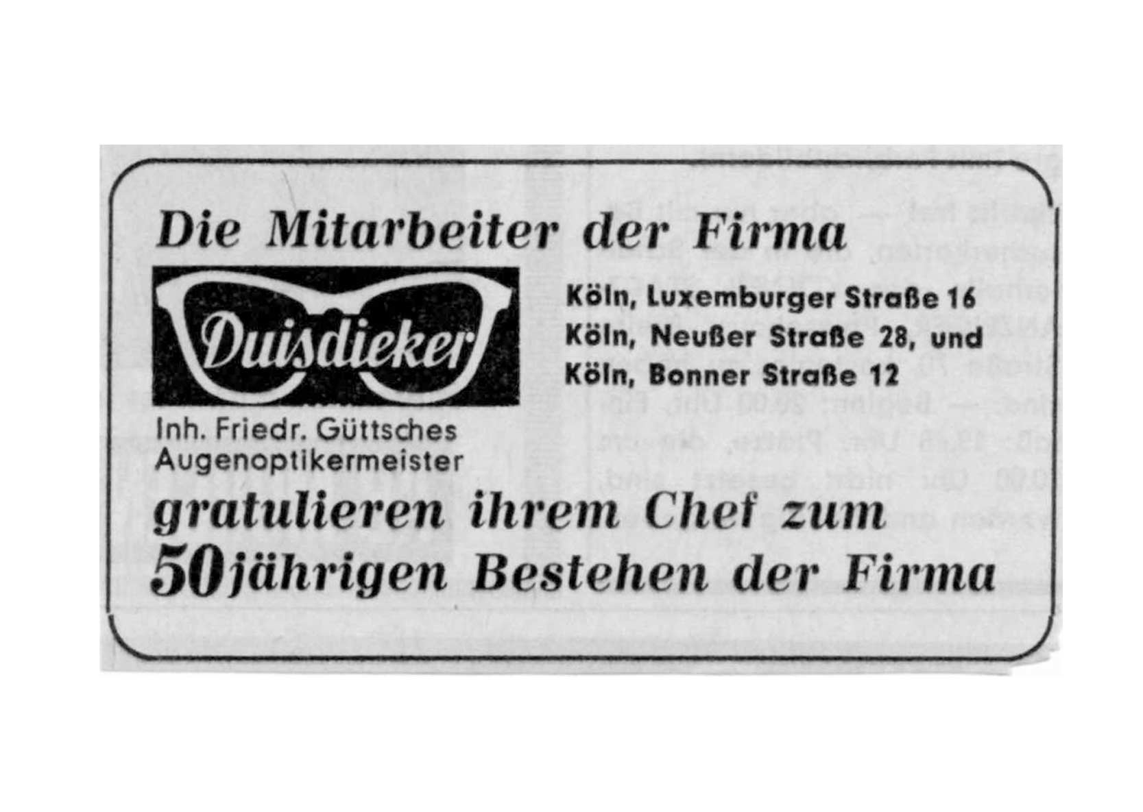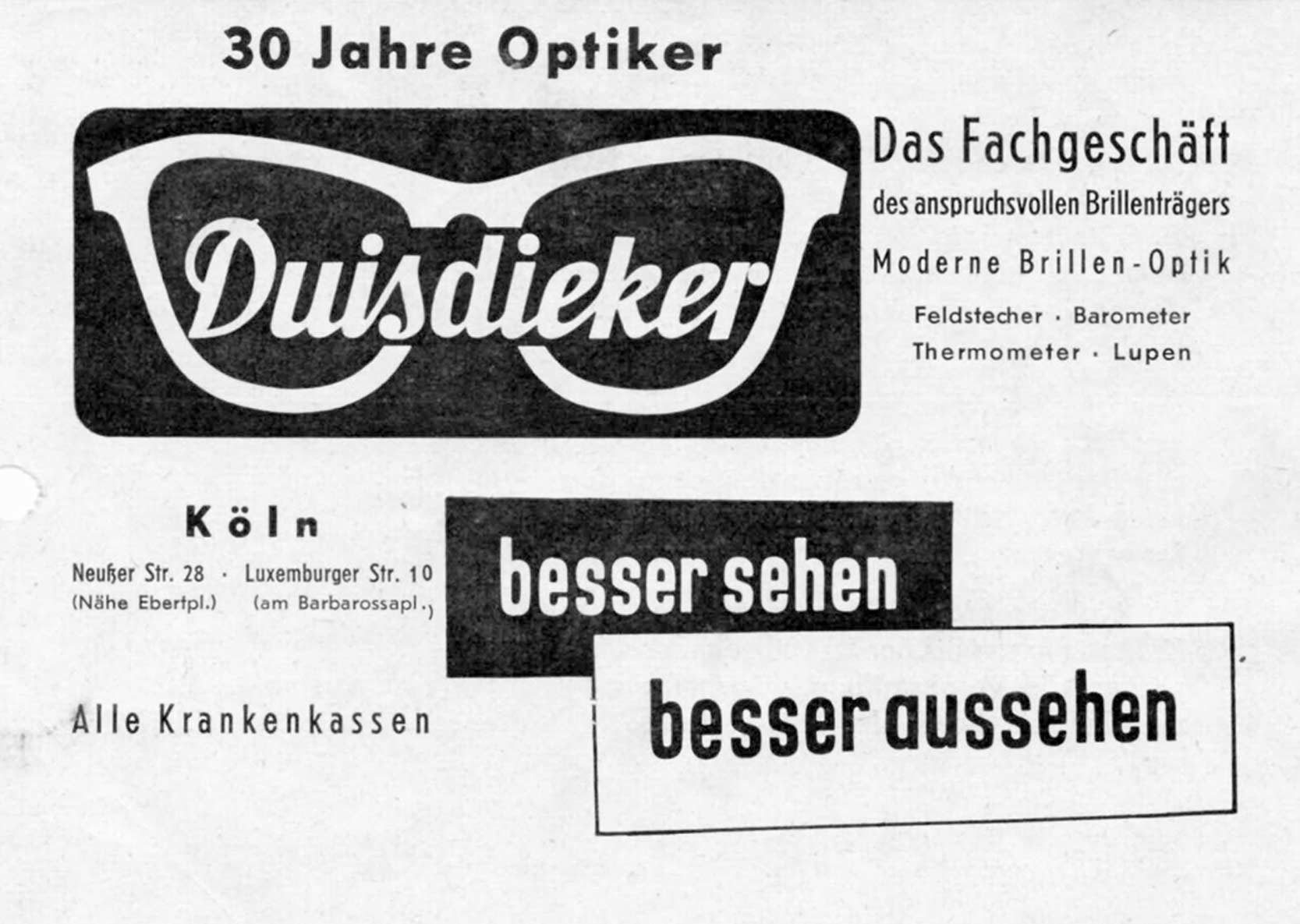 In den Wirtschaftswunderjahren startete Optik Duisdieker eine Kinowerbung.
