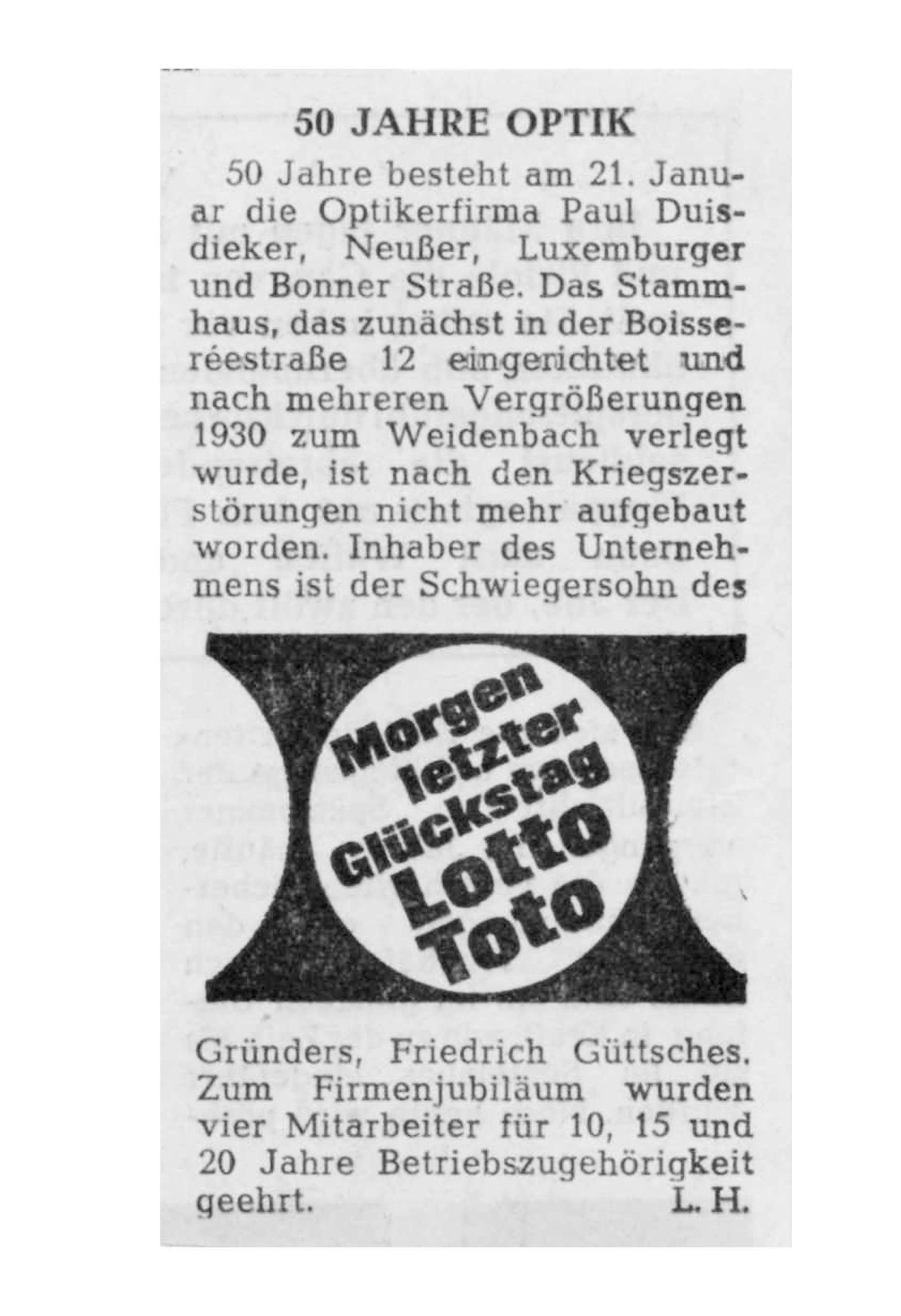Anfang der 70er gab es etwas zu feiern. 50 Jahre Optik Duisdieker!