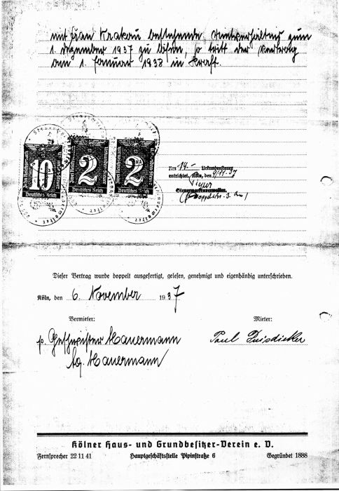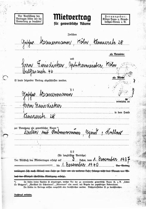 Paul Duisdieker machte sich nach seiner Rückkehr aus dem 1. Weltkrieg am 1.1. 1921 in einem Geschäft auf der Boisereestraße 12 in Köln selbstständig.