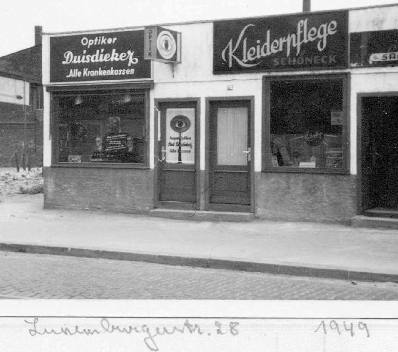 1942 wurde in der Luxemburgerstraße 28 ein Geschäft als Ersatz für den 1942 ausgebombten Laden im Weidenbach eröffnet. Zunächst noch provisorisch in einem Holzhaus. Anschließend baute die Firma Duisdieker in direkter Nachbarschaft, der Luxemburger Straße 10, das Erdgeschoß auf und verlegte 1943 das Geschäft hierhin.